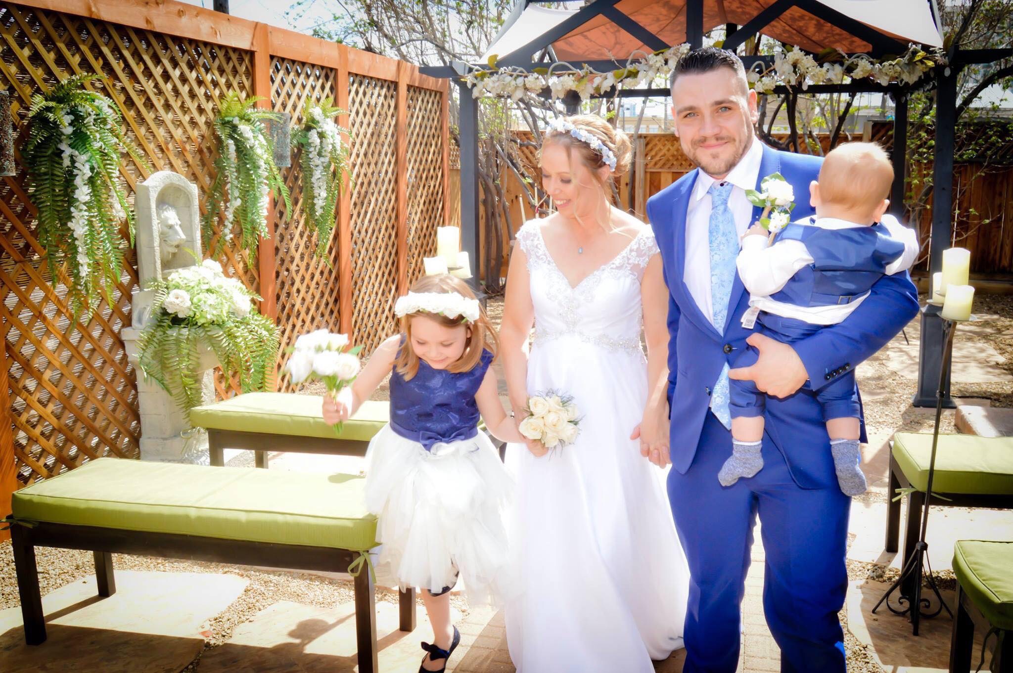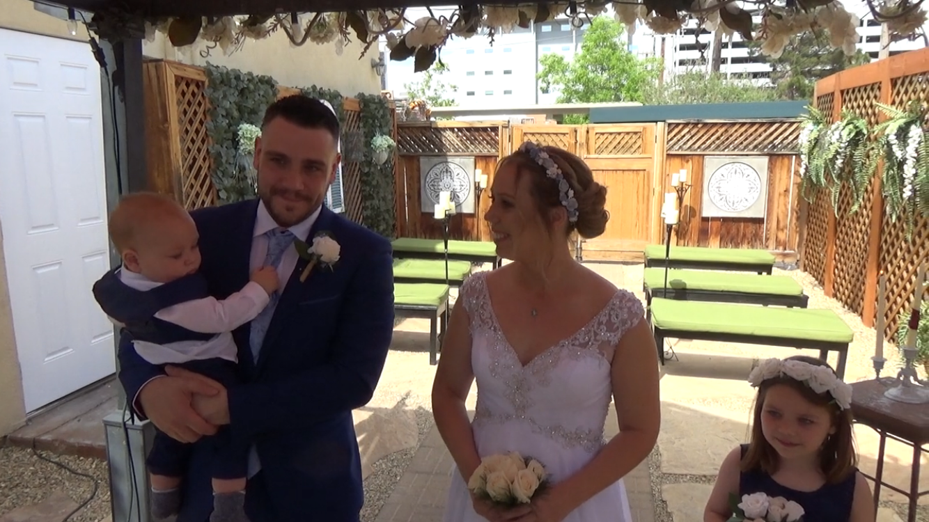 We started the day getting a taxi to collect the marriage license from the registry office in Nevada. Stopping on the way back for a cheeky McDonald’s- has to be done! We then got ready whilst enjoying a couple of drinks at the hotel. I had the luxury of getting my hair and makeup done. “Airbrush makeup” for special occasions that no kidding was literally airbrushed on! But it covered my tired eyes extremely well! Terry, bless him decided last minute he needed a haircut, so had to cart the kids to the next door hotel to juggle that- hey it is usually me that has that juggle!!